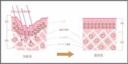 コラーゲンとは、皮膚・血管・歯などほとんどの組織に存在する繊維状のたんぱく質の事で、体を構成する全たんぱく質の約30%を占めています。