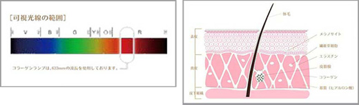 コラーゲンエステは、633nmの可視光線を出す特殊なランプを搭載した最新美容機器です。
